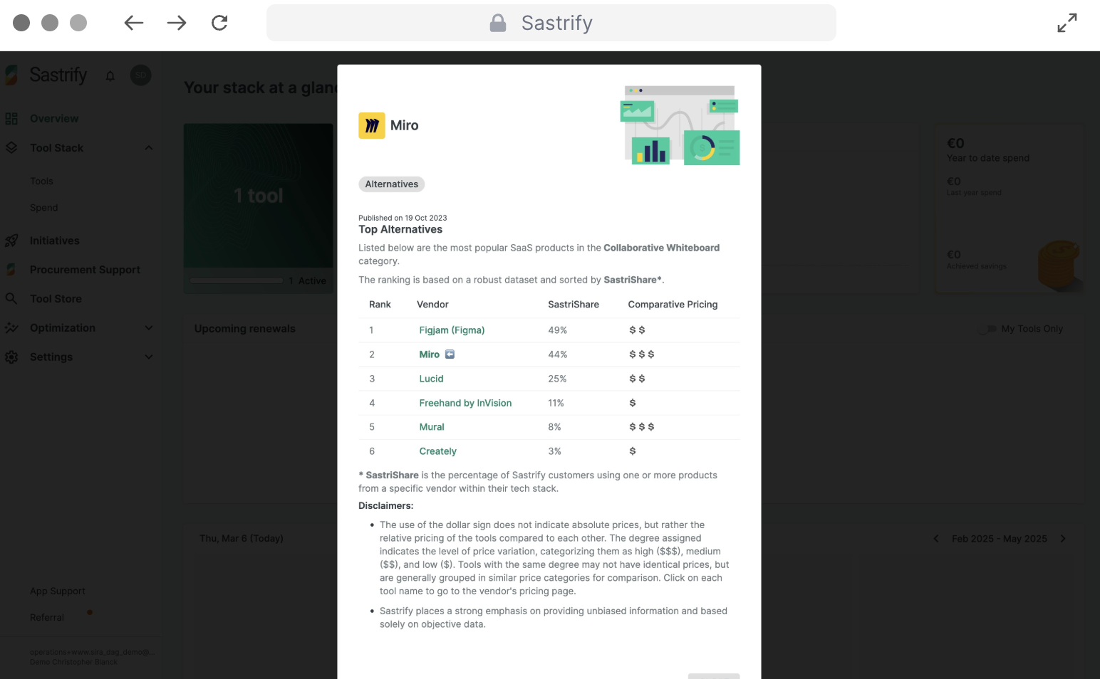 Keine Lizenz-Verschwendung, kein manuelles On-/Offboarding, keine bösen Überraschungen bei Verlängerungen. Mit den KI-gestützten Tools von Sastrify gewinnen Sie volle Transparenz, automatisieren Risikomanagement und sichern die Compliance Ihres gesamten IT-Stacks.